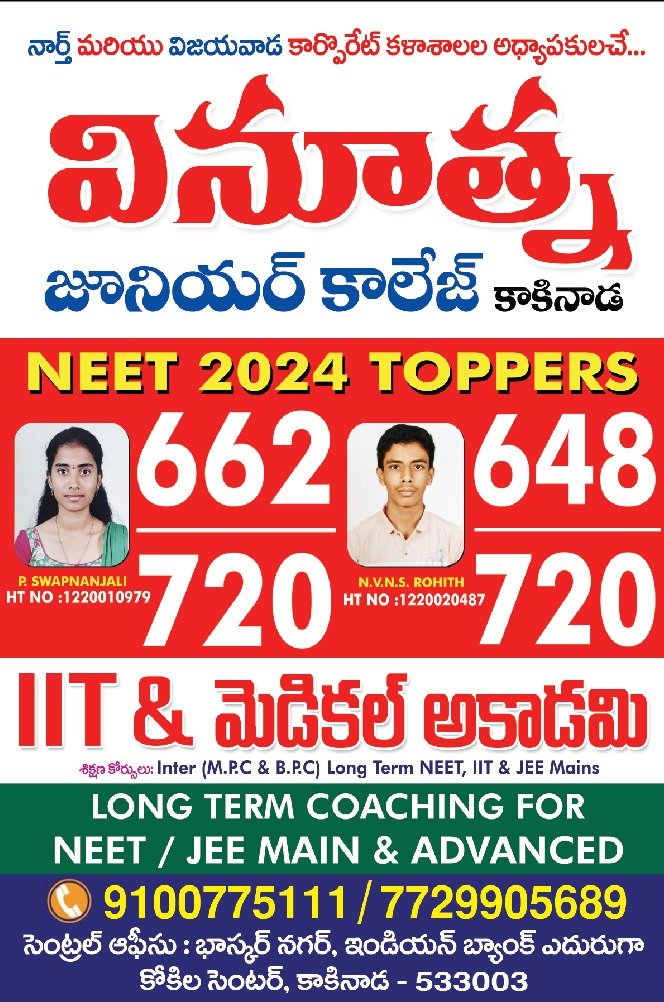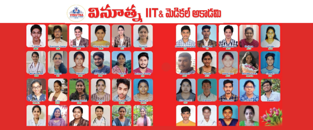 Welcome to VINUTNA IIT & MEDICAL ACADEMY, your gateway to excellence in education. At VINUTNA IIT & MEDICAL ACADEMY, we are dedicated to nurturing the brightest minds aspiring to conquer the fields of engineering and medicine. With a proven track record of success, our comprehensive programs are designed to empower students with rigorous academic training, expert guidance, and innovative learning methodologies.